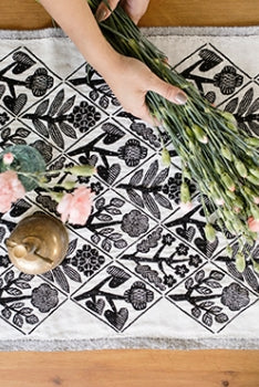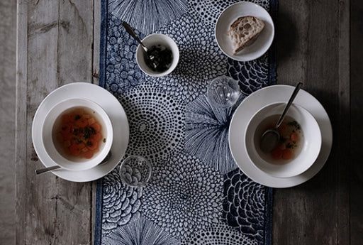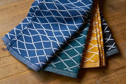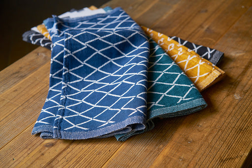 鹿児島睦の図案から、アートディレクターの前田景がモチーフのひとつひとつを分解。 パズルのように組み合わせ、 ペーパーナプキン用にデザインし、フィンランドの工場でプリントしました。 面白いのは、原画とは異なる色使いに配色し直しているところです。 これまでも数多く鹿児島睦とコラボして...