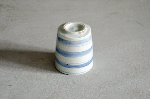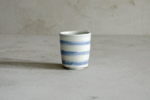 陶芸家・長戸裕夢の作品。 白磁に呉須の染付の可愛らしい小型の湯飲みです。鋭角な高台の立ち上がりで、佇まいの美しさがいっそう引き立っています。 淡いブルーのボーダーがおしゃれで、どこか北欧の雰囲気も。手作業で作り上げられた日本陶芸ならではの素朴な一品であり、日本茶だけでなくコーヒーにもおすすめの...