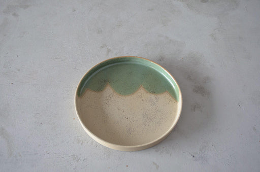 陶芸家・長戸裕夢の作品。4代続く窯元である長戸製陶所の所有する菊型に圧して形作られた豆皿です。 青みがかった釉が美しい一品。エッジのきいた日本らしい菊型ですが、和洋折衷にマッチします。薬味を盛ったり、箸置きとしてもおすすめ。 長戸 裕夢 京都府立陶工高等技術専門校、京都市工業試験場を修了後...